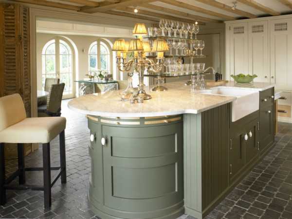 В выборе сантехники и металлических элементов следует придерживаться классики – искать смесители из бронзы или меди (или хотя бы с таким покрытием), выполненные в старинном стиле, мойку и пространство вокруг нее выложить камнем, плиткой. И саму бытовую технику нужно искать в таком старинном стиле.