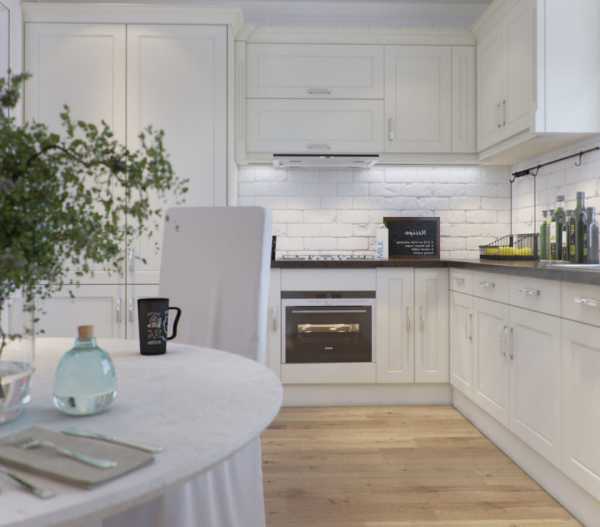 Есть вероятность того, что помещение будет выглядеть как хирургическая операционная в больнице. Но, если учесть, что белый цвет, как и черный, имеет «50 оттенков серого», то и белая кухня может выглядеть вполне многообразно. По своей сути пастель, характеризующая стиль, не что иное, как сильно выбеленные оттенки различных цветов. Достоинством кухни, выполненной в белых тонах, является то, что в ней всегда будет светло.