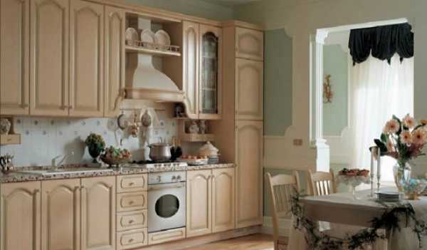 Так как стиль Прованс – это кантри, то выбор материала для такой кухни предопределен – натуральное дерево, за редким исключением можно выбрать крашенный МДФ.