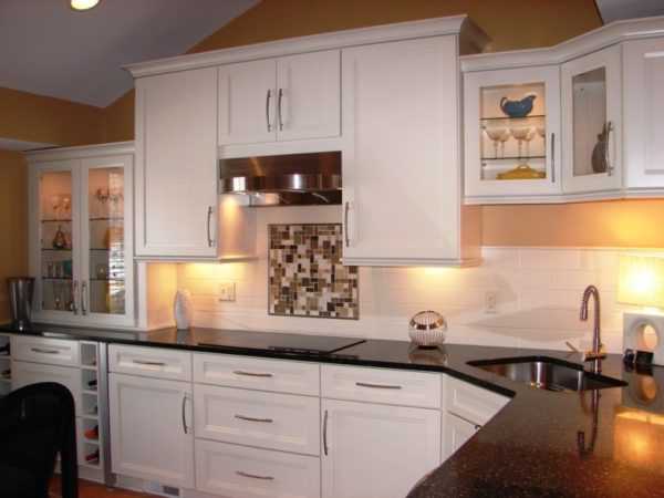 Если используется схема расположения с угловой мойкой, то необходимо обязательно предусмотреть дополнительную подсветку. В углу кухни оказывается самое темное место, и общего освещения будет явно недостаточно.