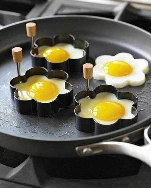Симпатичные гаджеты для кухни в виде сердечка, овала или цветочка для приготовления яичницы сделают блюдо куда вкуснее, вызвав улыбки на лицах ваших домочадцев.