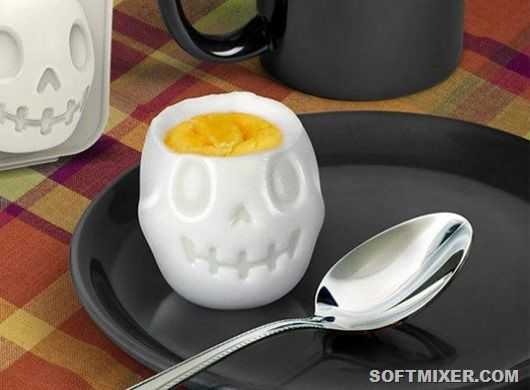 Приготовить необычный завтрак можно с помощью форм для яйца, которые бывают и квадратными, и в виде сердечек, и даже в форме черепа. Достаточно просто положить горячее вареное яйцо в форму на несколько минут, и готово.