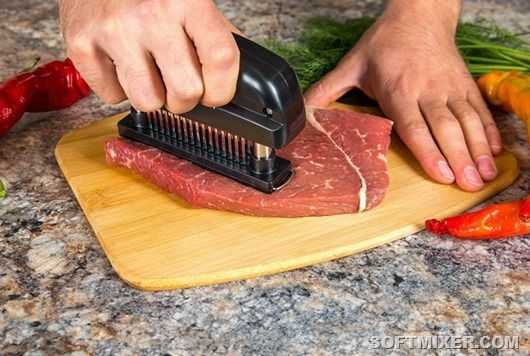 Вам захотелось отбивных поздним вечером, а не хочется беспокоить соседей стуком на кухне? На выручку придет интересный гаджет в виде ролика с шипами, бесшумно подготавливающего мясо для обжарки.