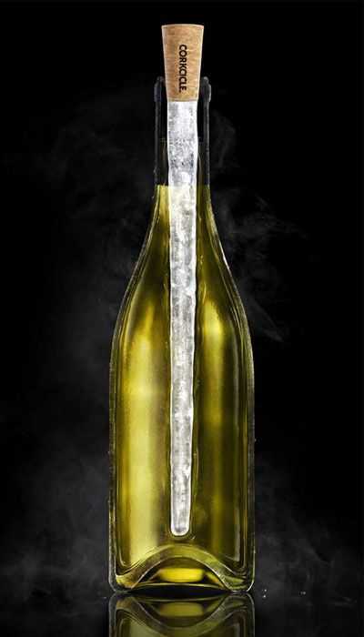 Благодаря одному из английских изобретений, любое вино можно охладить, не используя при этом льда. Эта конструкция представляет собой пробку, на которой крепится длинная палочка, внутри которой находится жидкость в виде сосульки. Саму конструкцию нужно хранить в морозильной камере, чтобы она не потеряла своих свойств, а по надобности вставлять в открытую бутылку. Вино будет охлаждаться, а бутылка будет оставаться всегда закрытой, кроме того температура вина будет сохраняться до часа.