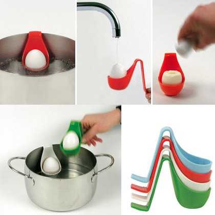 Также для яиц разработан еще один гаджет, с помощью которого можно отделять белки от желтков. Сам гаджет выполнен в форме яйца, и внизу находится узкое отверстие, через которое проходит только белок, тем самым желток остается внутри формы. Кроме того на современных рынках можно встретить множество гаджетов оригинальной формы, которые дополнят интерьер любой кухни.