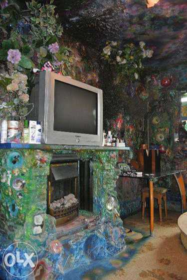 Впрочем, фальш-камин в неожиданном месте – ничто по сравнению с отделкой комнат, имитирующей какое-либо из творений природы. Скажем, хозяева этой квартиры решили потратиться на создание своего рода «пещеры».