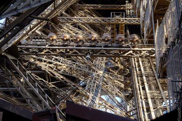 Интересно, что в опорах Эйфелевой башни до сих пор действуют два лифта фирмы Fives-Lille, которые были установлены еще в 1899 году. Они в полном порядке, только гидравлические насосы, приводящие в движение кабины лифта, со временем были заменены на электродвигатели.