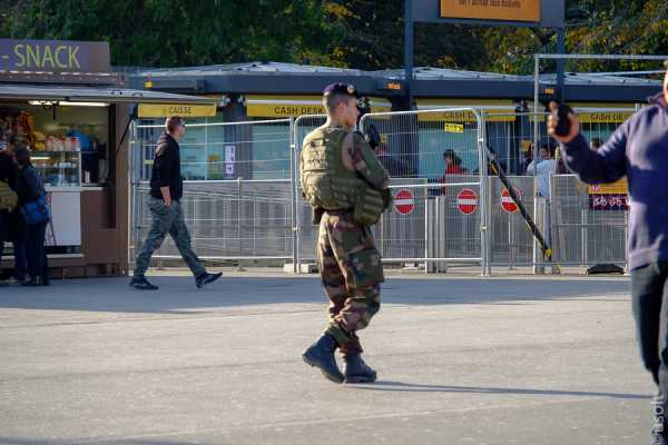 А вокруг башни и на площадке под ней ходят армейские патрули