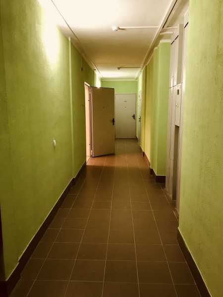 Общий межквартирный коридор. Мне не нравится цвет входных дверей. Если бы они были темно-коричневыми, как плинтус — смотрелось бы элегантнее. А так, как щитки те же. То ли квартира, то ли вход в подсобку…