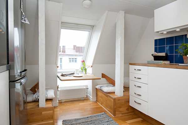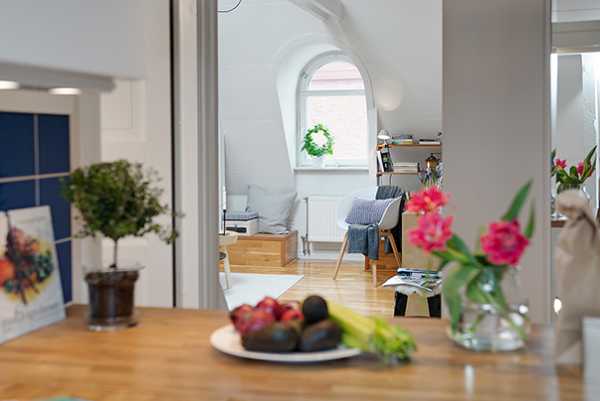 Вдоль скошенных стен не особенно расставишь мебель: шкаф не подойдет вплотную, а с дивана или кресла невозможно будет подняться, не стукнувшись головой. И все-таки, несмотря на все эти нюансы, – мансарда это, несомненно, прекрасное жилье. Знаете почему? Да просто она всегда нестандартна, а это исключительно привлекательно. А сложности можно обойти. Как – учимся у шведской команды Alvhem Mäkleri & Interiör, которая предложила блестящие идеи для маленькой квартиры в мансарде, достойные вдохновения и подражания.