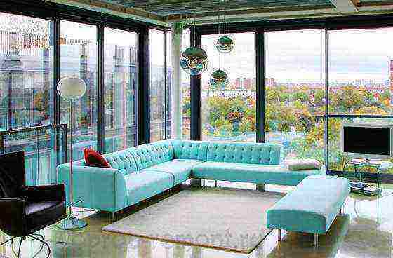 Мебель в интерьере с панорамными окнами