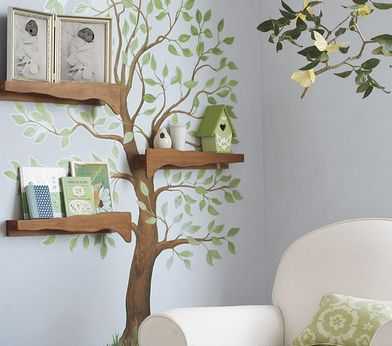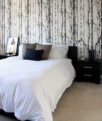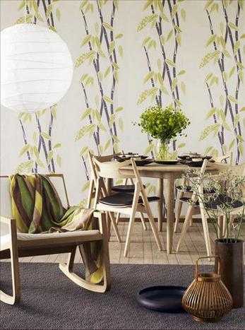 Чтобы подчеркнуть доминирующее положение природы в интерьере, можно выбрать обои с тематическим рисунком (лесная чаща, стебли, листва) или фотообои с соответствующим сюжетом.