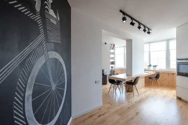 Выполняя заказ на дизайн квартиры в минималистском стиле, дизайнеры используют за основу 2 цвета, удачно совмещаемых между собой. Желательно, чтобы один из цветов был белым, так Вам быстрее удаться подчеркнуть графичность пространства. А другие краски постепенно добавятся в мелких деталях по ходу работы.