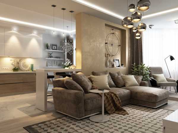 Коричневые и бежевые оттенки в интерьере однокомнатной квартиры