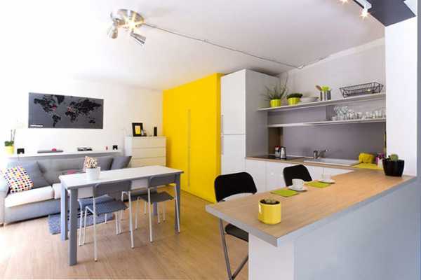 Начинать нужно с реконструкции – придется сносить лишние перегородки и стены. В однокомнатной квартире можно убрать стену, отделяющую прихожую от комнаты, либо объединить кухню и комнату, чтобы получить просторную квартиру-студию.