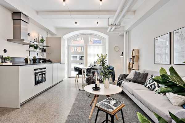 Эта интересная квартира с диваном, кроватью и даже с отдельной кухней имеет площадь около 36 кв. метров, отдельную прихожую, ванную и балкон. Оформлена она в стиле скандинавский минимализм и выглядит очень подходяще для копирования.