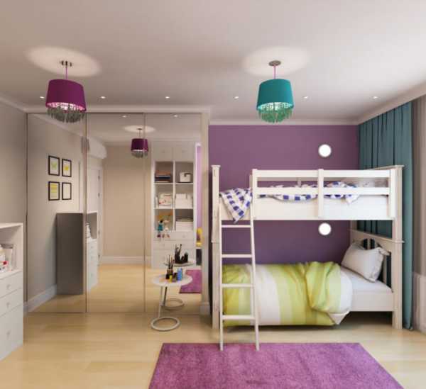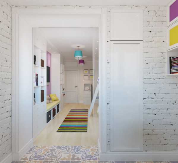 В дизайне детской комнаты преобладает белый цвет, но присутствует много ярких выделяющихся деталей, стимулирующих детей к умственной и физической активности.