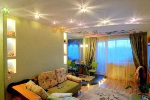 - общее. В данном случае подсветка комнаты осуществляется с помощью центрально расположенного осветительного прибора. Зачастую в его роли выступает люстра;
