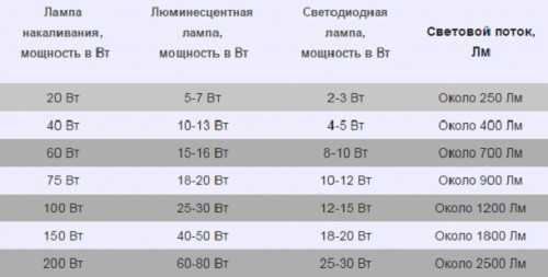 Помимо этого данный показатель будет опираться еще и на тип осветительного прибора (люстра, точечные светильники т.д.).