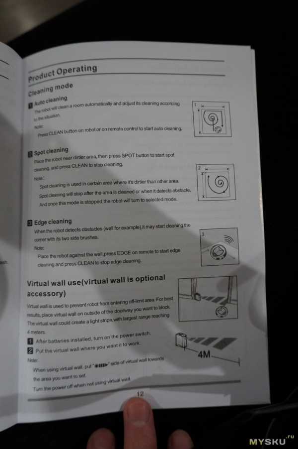 Очень довольна покупкой. Долго думала, покупать или нет, и вот созрела. Купила со скидкой, в день всемирного шопинга. за 9300 примерно. что можно сказать про пылик? Он реально помогает )))) пришел почти разряженный, поработал минут 10 и пошел на станцию. с первой попытки забрался. зарядился за ночь, не знаю сколько стоял, поставила в 10ч на зарядку, в 6ч встала , был заряжен. первая уборка была только сухой, заряда хватило на 1.5ч. вторая уборка на следующий день, уже влажная. намочила тряпку для лучшего эффекта, налила в бункер воды. уборкой довольна. конечно, руками помыла бы лучше, но для каждодневной влажной уборки пойдет. просто идеально. по поводу маршрута, мне кажется, что ничего он не строит, убирает по сто раз на одном и том же месте. но чистоту наводит)) просто долго. виртуальная стена вообще вещь. постоянно двери закрывать не охота, а так стену эту поставил и красота)) пультом поигралась, но в принципе ненужная вещь. продавец по запросу прислал инструкцию на русском.