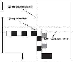 Укладку лучше всего начинать вести изнутри, это позволит уменьшить погрешности. В середине контрольной линии проводится перпендикуляр, относительно которого вдоль базовой линии по разные стороны ведется укладка.