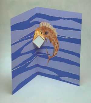 Ромбовидный рот сделан благодаря использованию техники угла сгиба. Из-за этого рыбка становится анимированной. Как только открытка открывается полностью, рот закрывается. С помощью порванной бумаги создается эффект моря (воды). Смещенное от центра изображение рыбки делает открытку еще более интересной.women-on-line.ru