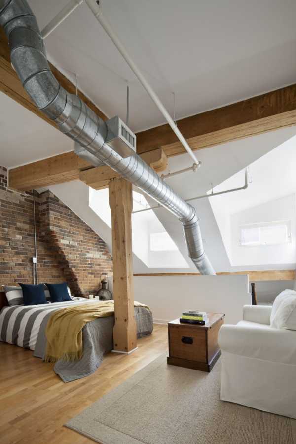 Элементы конструкции здания обязательно должны быть сохранены, чтобы максимально воспроизвести аутентичный лофт. Это могут быть балки, перекладины, стропилы, которые подчеркнут индустриальность интерьера.