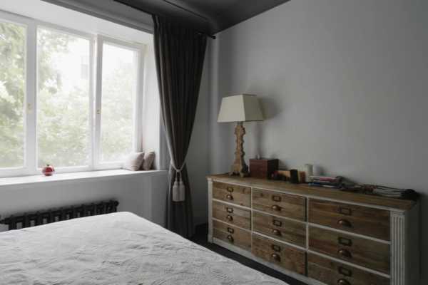 Отличным вариантом станет объединение лоджии или балкона со спальней, чтобы достаточно осветить комнату и задействовать в интерьере максимальное количество окон.