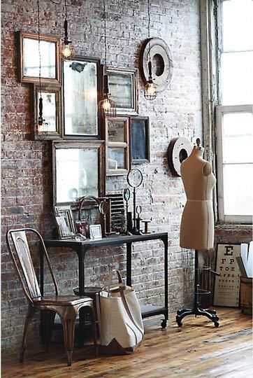 Также для украшения стен интерьера в стиле лофт подойдут состаренные зеркала.