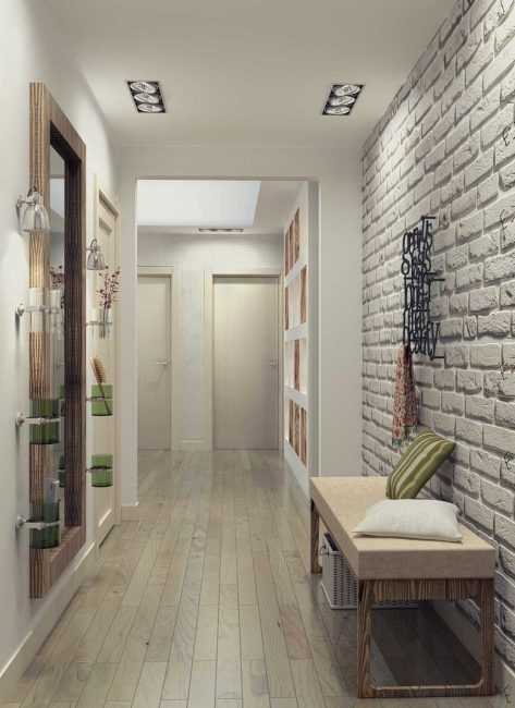 Не обязательно использовать настоящий кирпич. Можно купить в магазине «кирпичные» заготовки или специальный валик, для создания соответствующей текстуры. Это хороший вариант, если вы делаете чисто косметический ремонт и не хотите «разбирать» стену.
