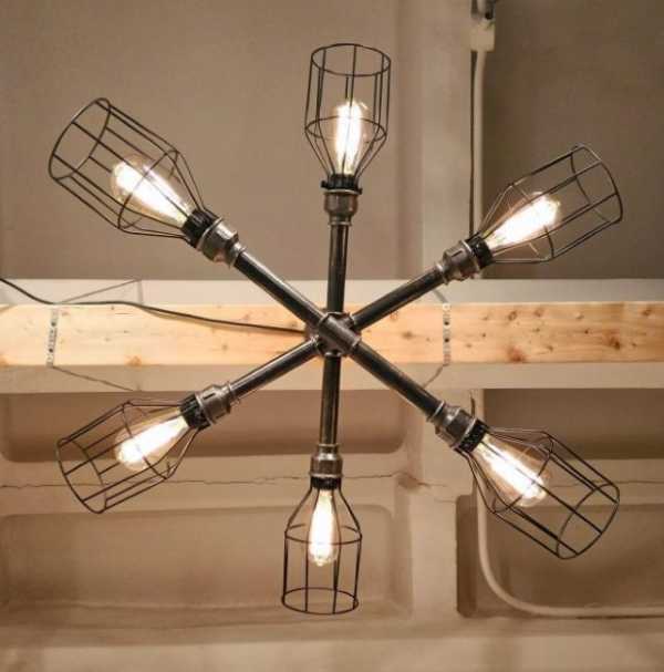 Белому лофту — белую люстру. Тут стиль позволяет фантазии разгуляться. Хорошая люстра – это люстра с индустриальным, необычным видом. Подвесная «закрытая» лампа, окружённая геометричной металлической конструкцией или необычное сооружение из «открытых» ламп без плафонов, которые, кстати, характерны для этого направления. Но не забывайте о главном – она должна хорошо освещать