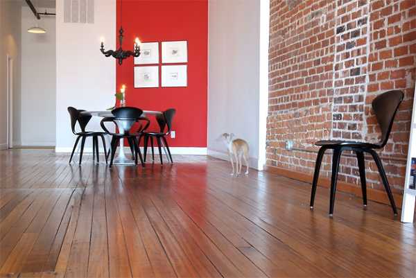 Отделка стен в стиле лофт: серый или черный металл, белый грубо оштукатуренный и покрашенный бетон, красный кирпич составляют трио основных цветов.