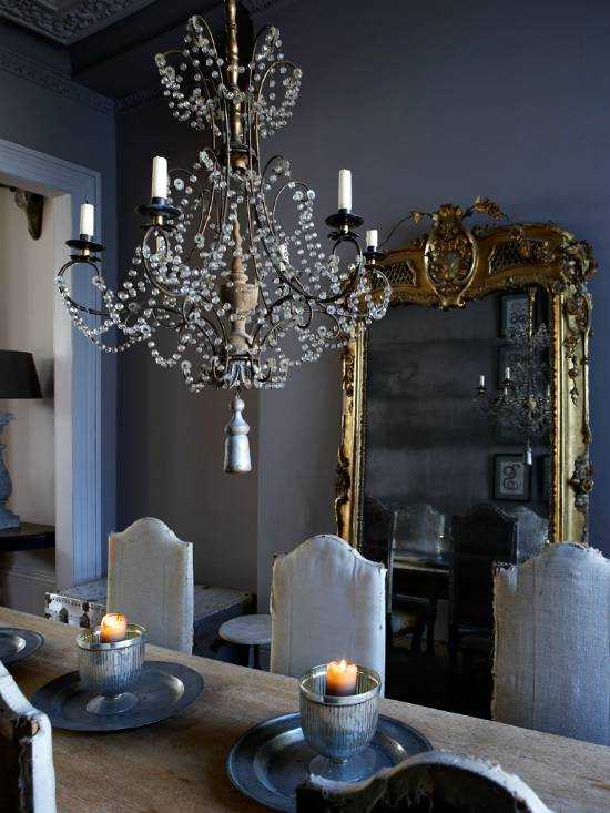 Основная люстра может быть расположена над композиционным центром комнаты, притом, чем выше потолок в помещении, тем крупнее должна быть люстра. Кроме того, для оформления интерьера можно использовать настольные и напольные светильники, торшеры и другие осветительные приборы.