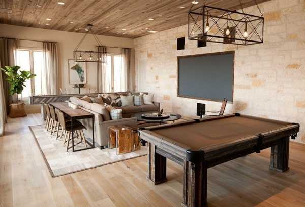 Вариантов оформления гостиной в лофт стиле очень много. При выборе светильников следует учитывать площадь комнаты, расстановку мебели и зонирование, а также основную гамму помещения.