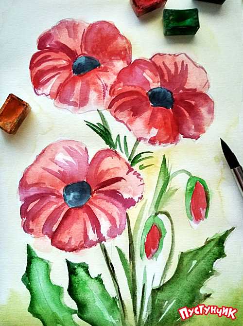 Как нарисовать маки акварелью?