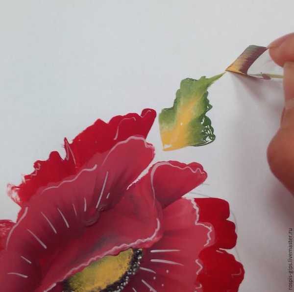 Если лепесток получился немного прозрачным, по нему можно пройти еще раз, когда краска подсохнет. Это обычная практика мастеров.