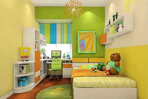 Стены желательно оклеить обычными бумажными обоями, выбранными в спокойных тонах. Украсить их можно фотообоями, на которых изображены герои любимых мультфильмов, животные, сказочные сюжеты и т. д. Интерьеру должны соответствовать и шторы на окнах.