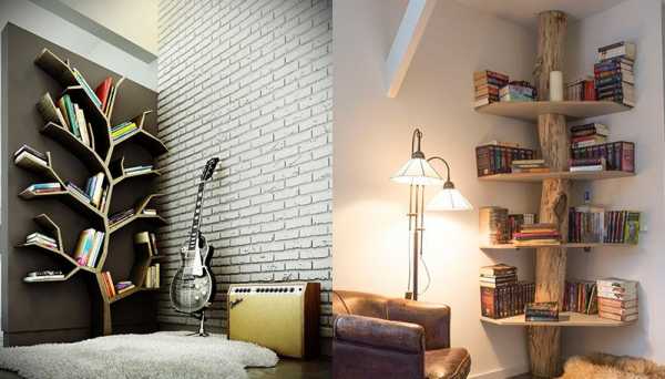 Промежутки возле окна тоже можно рационально использовать для угловых полок, открытых стеллажей.