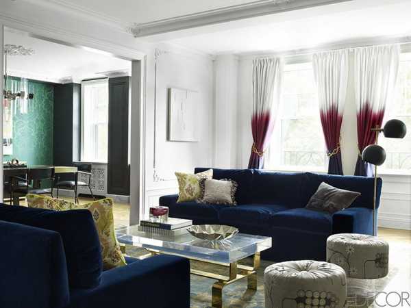 Тяжелые шторы или легкие в пол гардины визуально поглотят все свободное пространство.