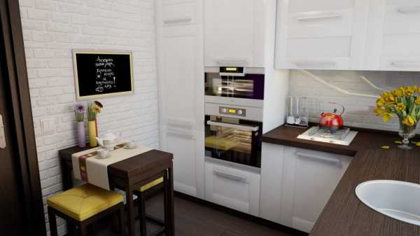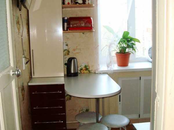 Если дизайн кухни маленький совсем, например, 2*2 м, то подойдет откидной стол.