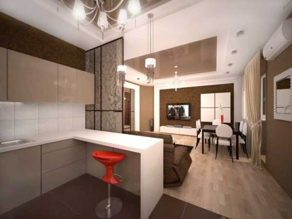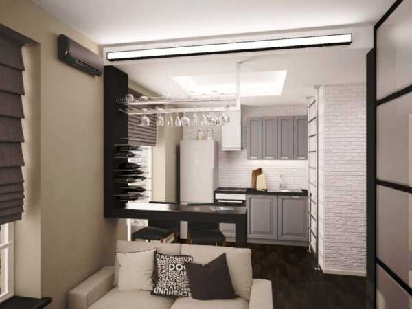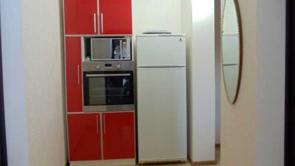 В таких помещениях обычно имеются ниши, пространства или выступы. В углубления стен прекрасно впишется встроенный шкаф–купе. В нем можно поместить кухонную утварь, бытовую технику.