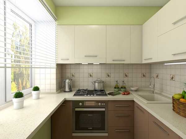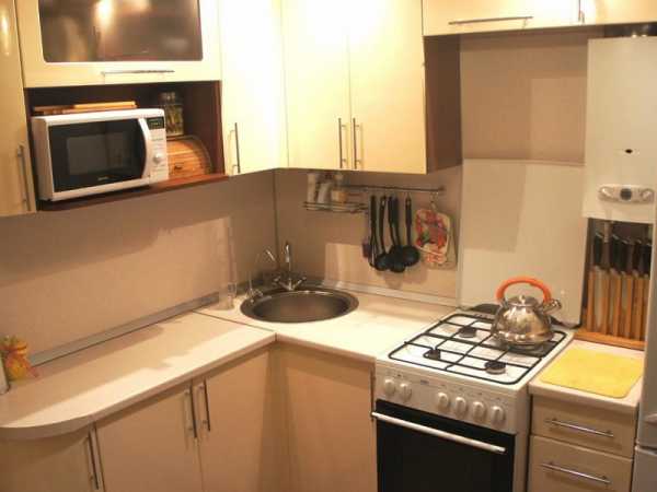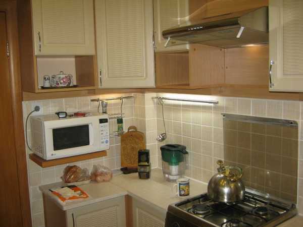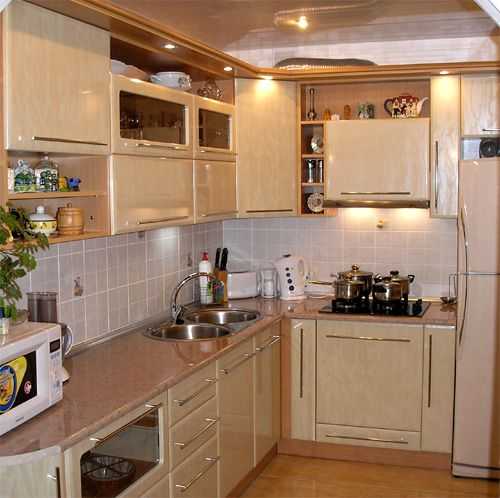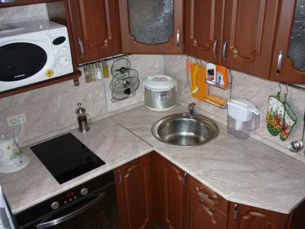 - Грамотно использовать каждый свободный угол для установки бытовой техники или угловых шкафчиков.