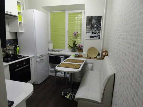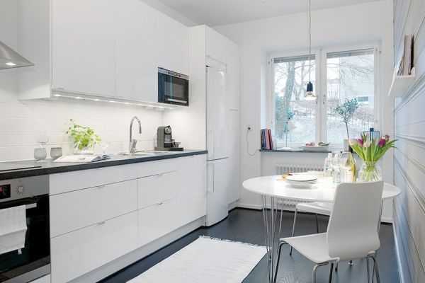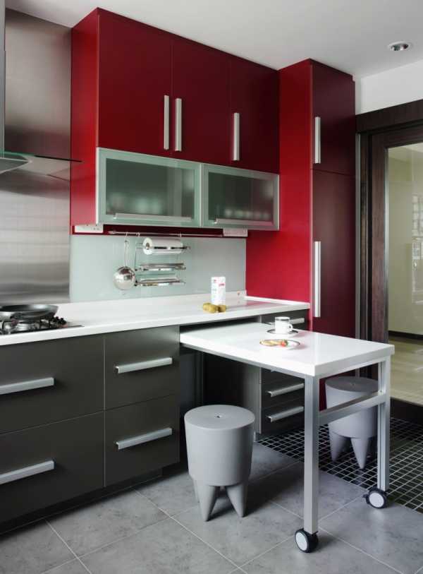 Оптимальным выбором для маленьких кухонь считается покупка складных или встроенных конструкций, а также трансформеров. Они в собранном виде не занимают много места, а их раскладывание осуществляется только в случае возникновения необходимости в этом.