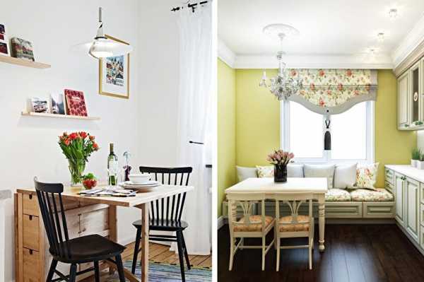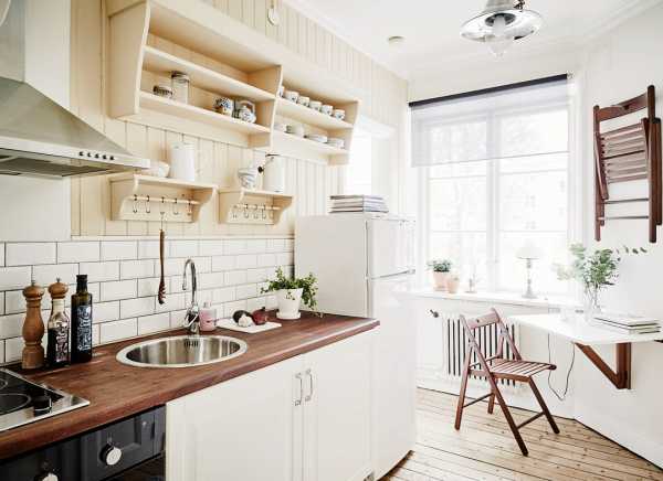 - Стол на маленькой кухне можно установить складной, прикрепив столешницу к широкому подоконнику.