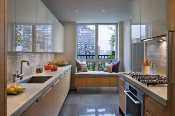 В планировке существенно, квадратное помещение или длинное. Квадратная кухня – обычная с точки планировки. В удлиненной в сторону окна, можно выделить миниатюрную обеденную зону у окна.