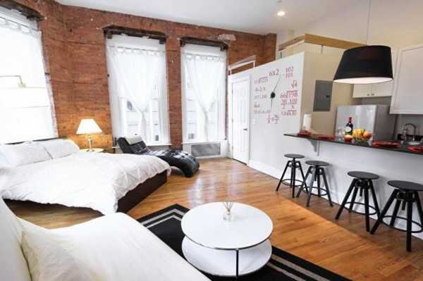 В маленькой квартире не рекомендуют ставить глухие стены, если этого не требует конструкция. Хитрость состоит в том, что сквозь легкие стены проходит свет, а потому помещение визуально кажется более просторным, взгляд не упирается в стену, помещение как бы продолжается.