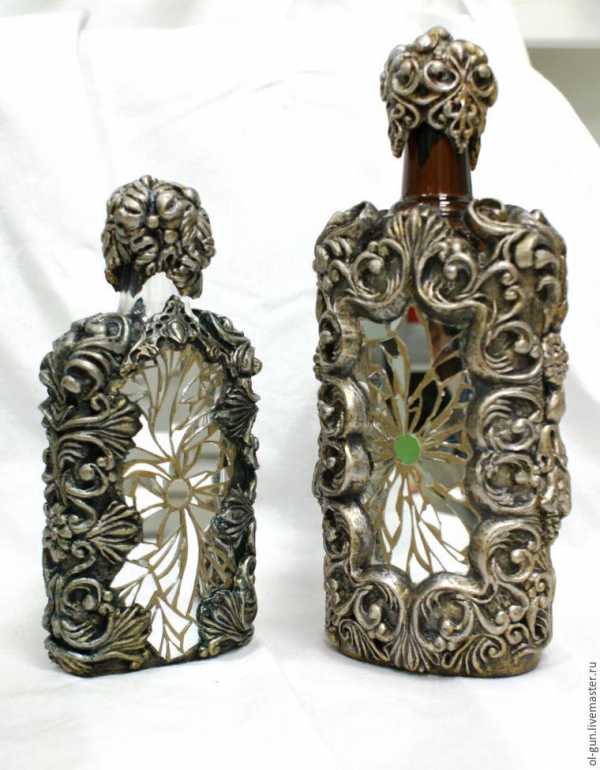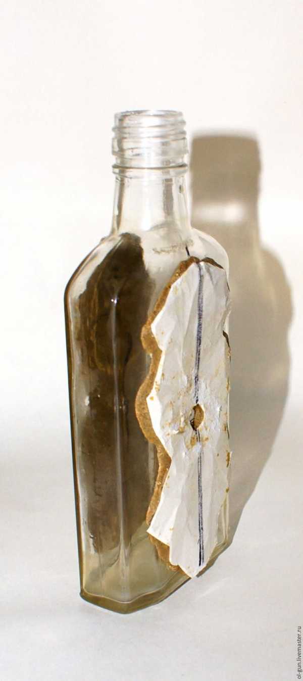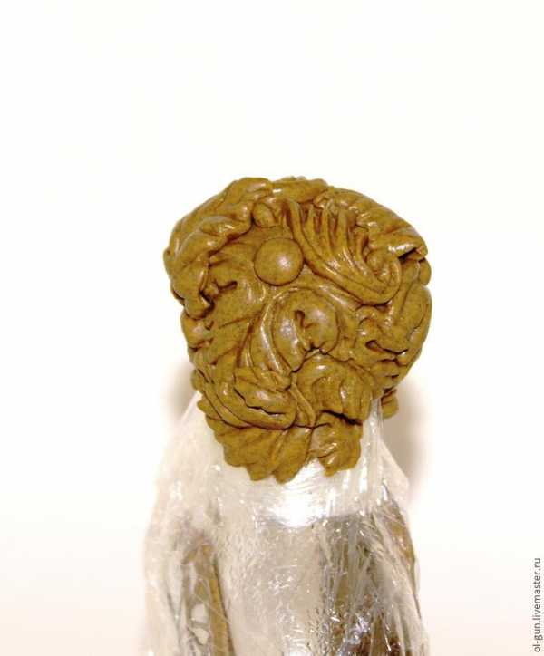 Берем бутылку, пластилин, и с помощью либо молдов, либо собственного воображения на боковинке бутылки ваяем что хотим. Как управляться с пластилином для создания конкретного молда под конкретные хотелки, я рассказывала тут >>