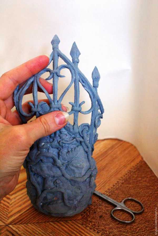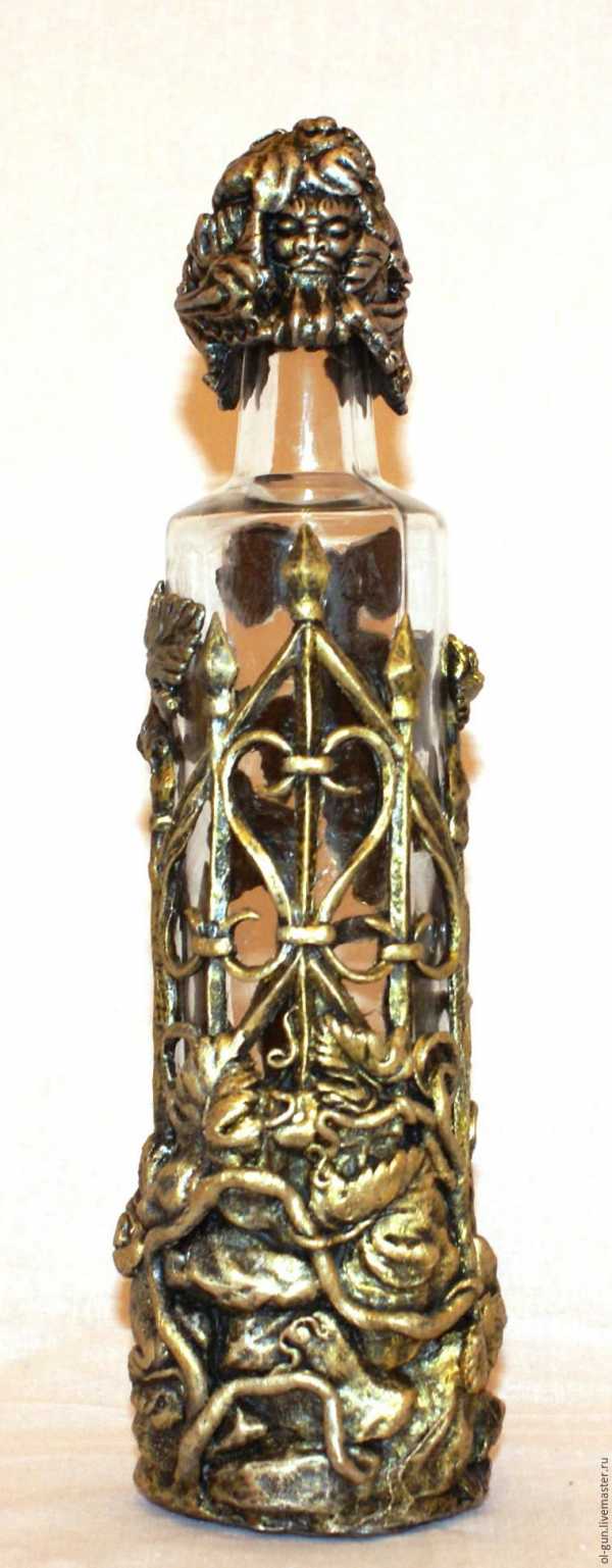 И вот вырезали, по бутылке обжали, пленкой, если надо, зафиксировали. После повторили процедуру для второй части. Ну и клеим на супер-пупер клей, красим, лачим быстросохнущим нитроцеллюлозным лаком и наливаем в ёмкость… Святой воды! А вы что подумали?