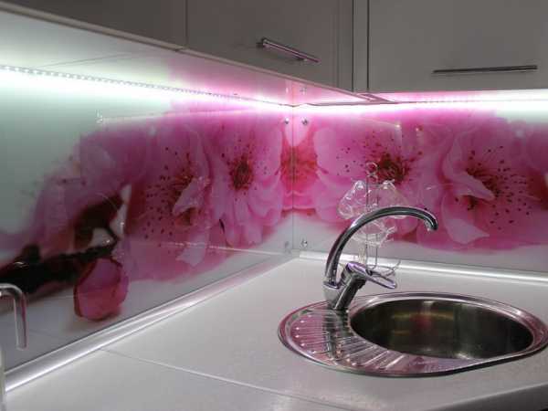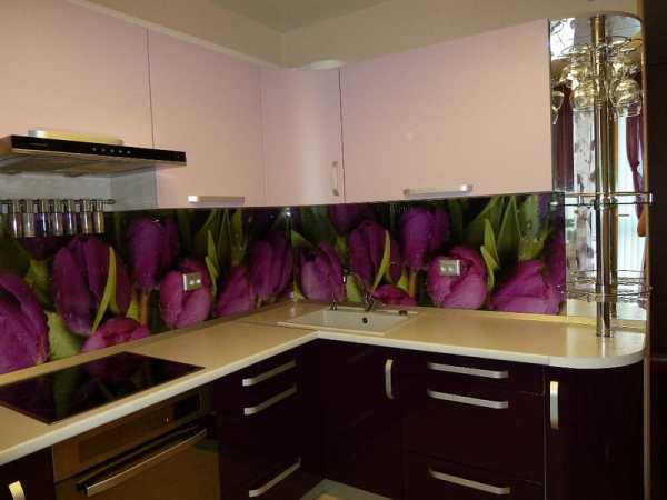 Стеклянная панель оживит обстановку, подарит атмосферу праздника. Она не восприимчива к влаге и пару, легко моется, поэтому идеальна для кухонного помещения.