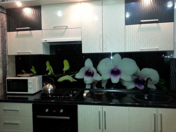 2. Еще одной вариацией будет фотопечать на стекле. Самый популярный вид панели на сегодня. Они называются скинали. Преимущество данной методики красота и долговечность.